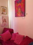 Sanctuary is now a Sacred Space and a powerful place of Peace and Healing. Many people enter and immediately burst into tears. Sensitive people can feel the healing begin as they step inside. The Angel Paintings open channels to the Higher Realms, helping to bring Inner Peace and Healing and to activate the connection to the Higher Self and to the Angelic Realms. Do not hesitate to contact me if you wish to visit.
